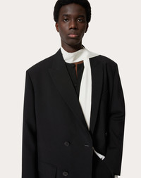 Double-breasted wool jacket - Oversize fit - Lined - Notch lapels - Button fastening - Two front pockets with flap - One pocket on left breast as worn - Composition: 100% Polyester - Lining: 100% Cupro - Available in 3 sizes: (Size 1: 42-44/16.5-17.3; Size 2: 46-48/18.1-18.8; Size 3: 50-52/19.6-20.4) - Length: 78 cm / 30.7 in. from the back of the neck in a Size 2 - The model is 187 cm / 6'1" tall and wears a Size 2 - Made in Italy Product code: VCEE319LM_0NO
