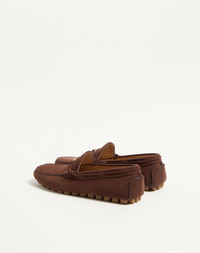 Driver Fastaway Loafer in deerskin suede - VLogo Signature detail with antique brass-effect finish - Custom rubber sole - Made in Italy Product code: 7Y2S0K98AAH_7N9