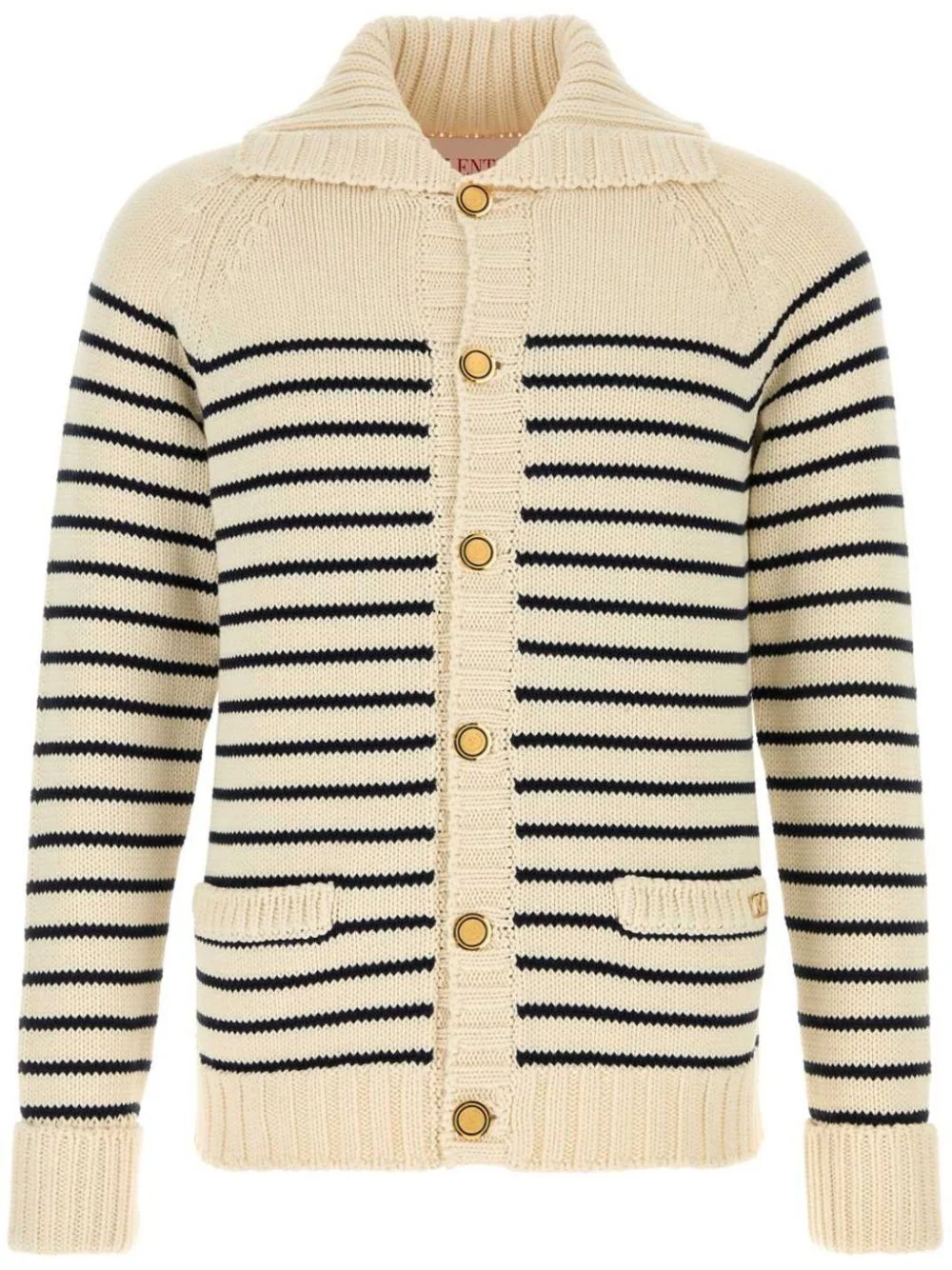 striped cardigan Highlights - Valentino ready to wear - Light beige - Front button fastening - Two front welt pockets - Vlogo signature Made in Italy Composition Cotton 100%