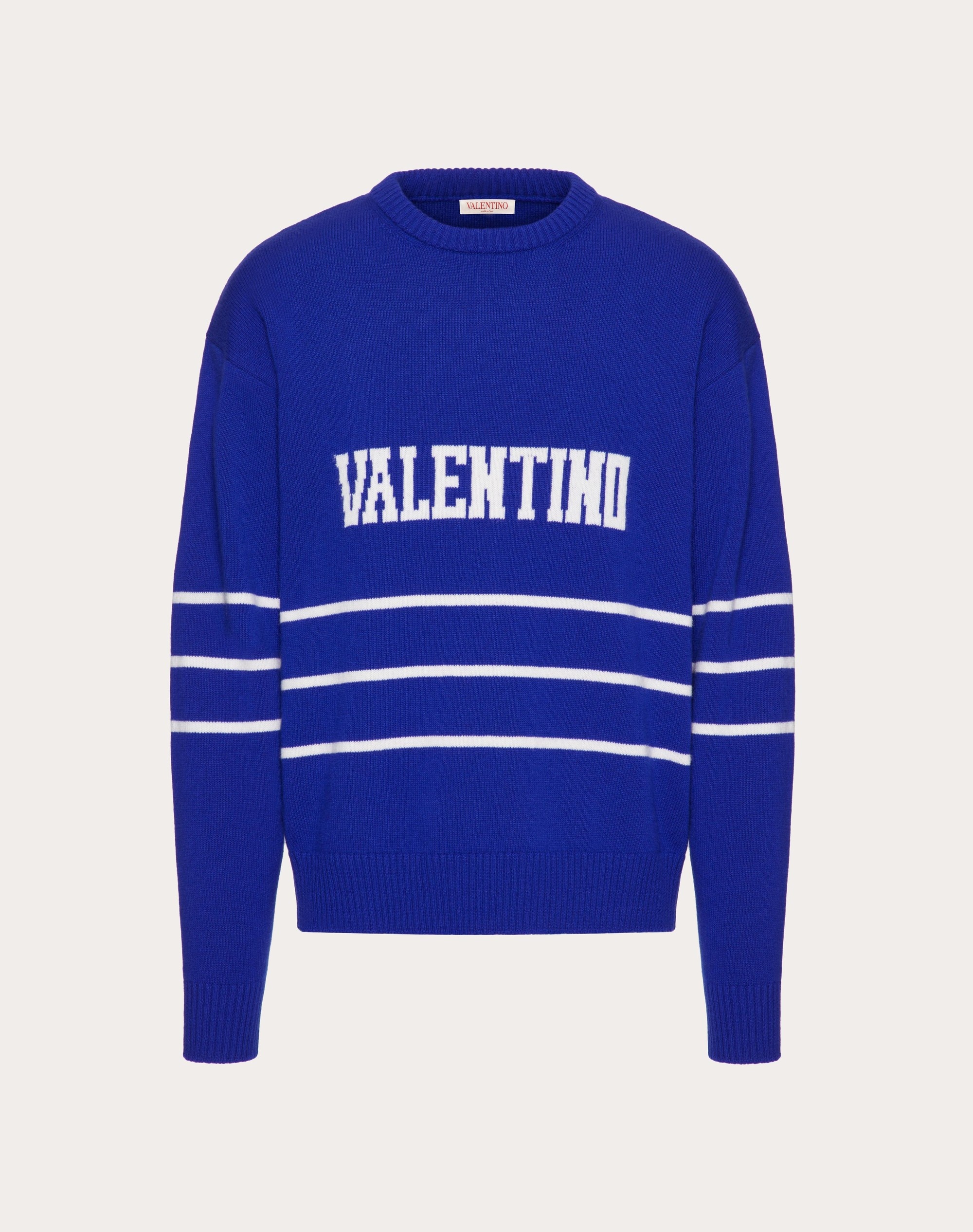 Wool crewneck sweater with Valentino embroidery - Regular fit - 7 gauge - Valentino embroidery on front - Composition: 100% Virgin Wool - Length: 70 cm / 27.5 in. from the back of the neck in a size M - The model is 187 cm / 6'1" tall and wears a size M - Made in Italy Product code: VKC23N94V_UZQ