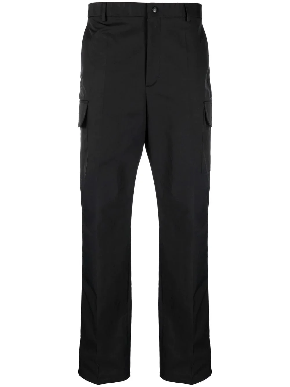 flap pocket cargo style trousers Valentino Garavani balances refined aesthetic with a casual silhouette through this pair of black cargo style trousers which feature a tailored straight-leg silhouette and feature flap pockets towards the sides. Highlights - Valentino ready to wear - Black - Mid-rise - Belt loops - Button fly fastening - Two side slit pockets - Two side flap pockets - Straight leg - Two rear welt pockets Made in Italy Composition Outer: Polyester 64%, Elastomultiester 36% Lining: Polyester 100% SIZE & FIT Model measurements Height 6 ft 2 in(1.89 m) Bust/Chest 35.43 in(90 cm) Hips 36.61 in(93 cm) Waist 28.74 in(73 cm) FittingInformation This piece fits true to size. We recommend you get your regular size Regular fit Made with a mid-weight fabric Washing instructions Read Manufacturer Guidelines