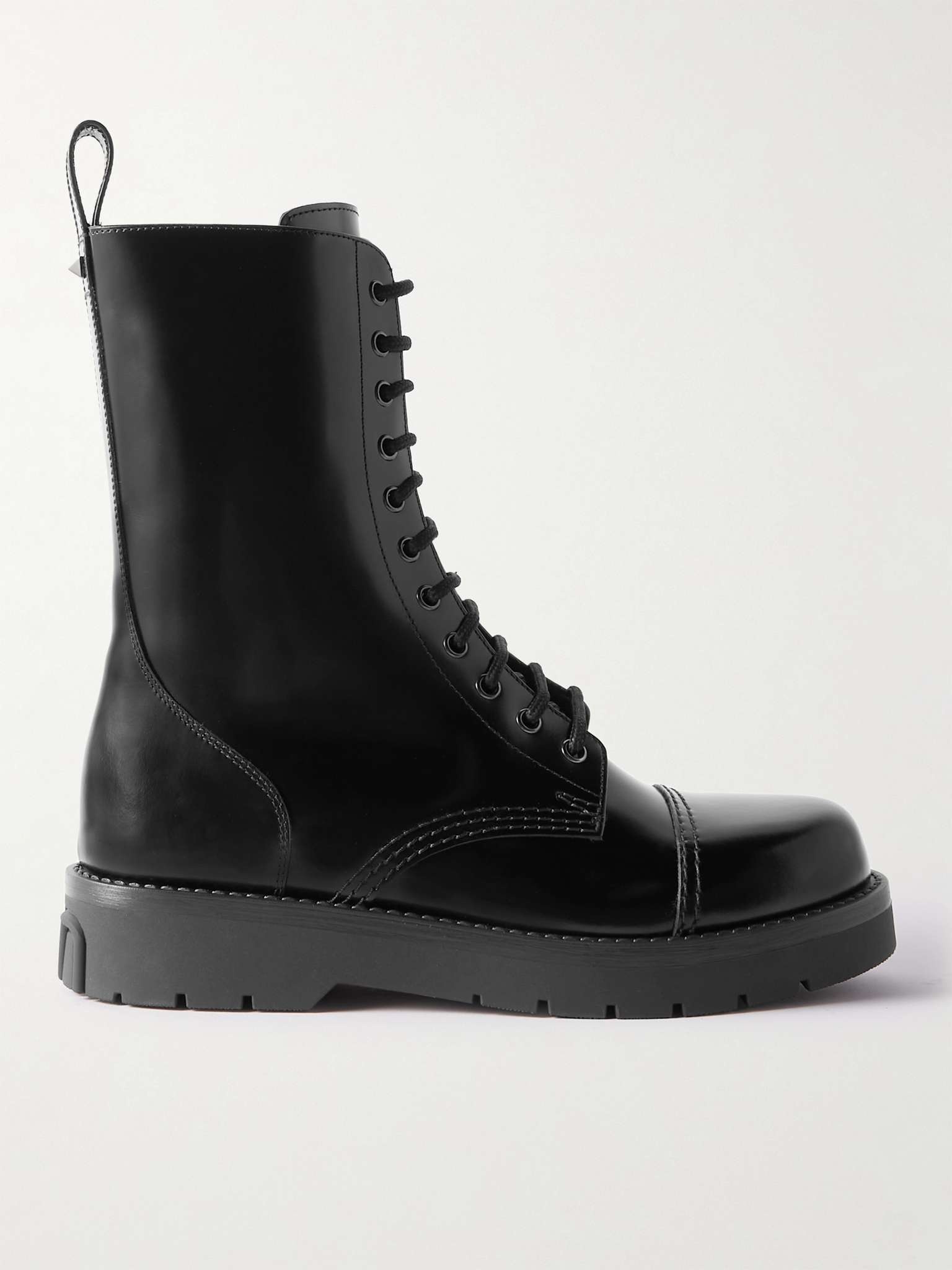 Valentino Garavani's boots are designed in a classic combat profile with a lace-up front and pull tabs at the back. They've been crafted in Italy from smooth black leather and have chunky rubber soles. Size & Fit - Fits true to size. Take your normal size - European sizing Details & Care - Black leather (Calf) - Lace-up - Made in Italy