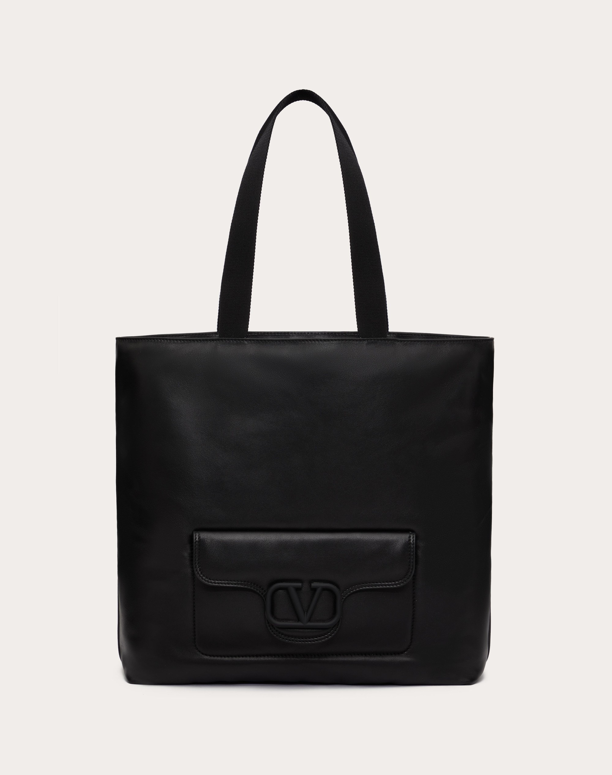 Valentino Garavani Noir nappa leather shopping bag with VLogo Signature element. The bag can be worn over the shoulder. - Tone-on-tone logo detail and ruthenium-finish hardware - Exterior: slip pocket on front with magnetic closure - Interior: wall pocket with zipper - Double ribbon handles - Handle drop length: 25 cm / 9.8 in. - Valentino Garavani logo - Dimensions: W41 x H37 x D13 cm / W16.1 x H14.6 x D5.1 in. - Made in Italy Product code: 5Y2B0C79ZIQ_0NO