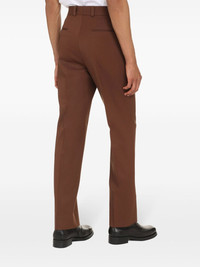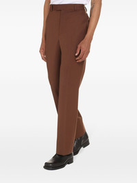high-waisted tailored trousers A testimony to Valentino Garavani's impeccable tailoring, these trousers are all about sophistication. Crafted from virgin wool with a bit of stretch, the chocolate brown hue and pressed crease add a refined touch to the pair. Highlights - Valentino ready to wear - Chocolate brown - Stretch-virgin wool - High waist - Belt loops - Concealed front fastening - Two side inset pockets - Two rear welt pockets - Pressed crease - Tailored cut Made in Italy Composition Lining: Cupro 100% Outer: Virgin Wool 98%, Elastane 2% SIZE & FIT FittingInformation This piece fits true to size. We recommend you get your regular size Regular fit Made with a mid-weight stretch fabric Measurement FRONT RISE 11.41 in(29 cm) INSIDE LEG 30.51 in(77.5 cm) BACK RISE 14.01 in(35.6 cm) HIPS 40 in(101.6 cm) WAIST 34.01 in(86.4 cm) Washing instructions Dry Clean Only
