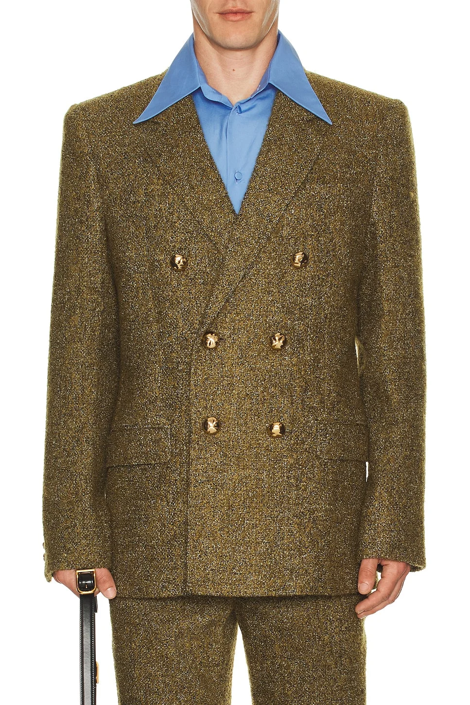 Details - 52% wool, 27% mohair, 16% polyamide, 5% silk - Dry clean only - Double breasted closure - 3-pocket styling - Faux buttoned cuffs - Midweight tweed fabric with padded shoulders - Made in Italy - Our Style No. VTIF-MO23 - Manufacturer Style No. 7V0CEJ25B3Q