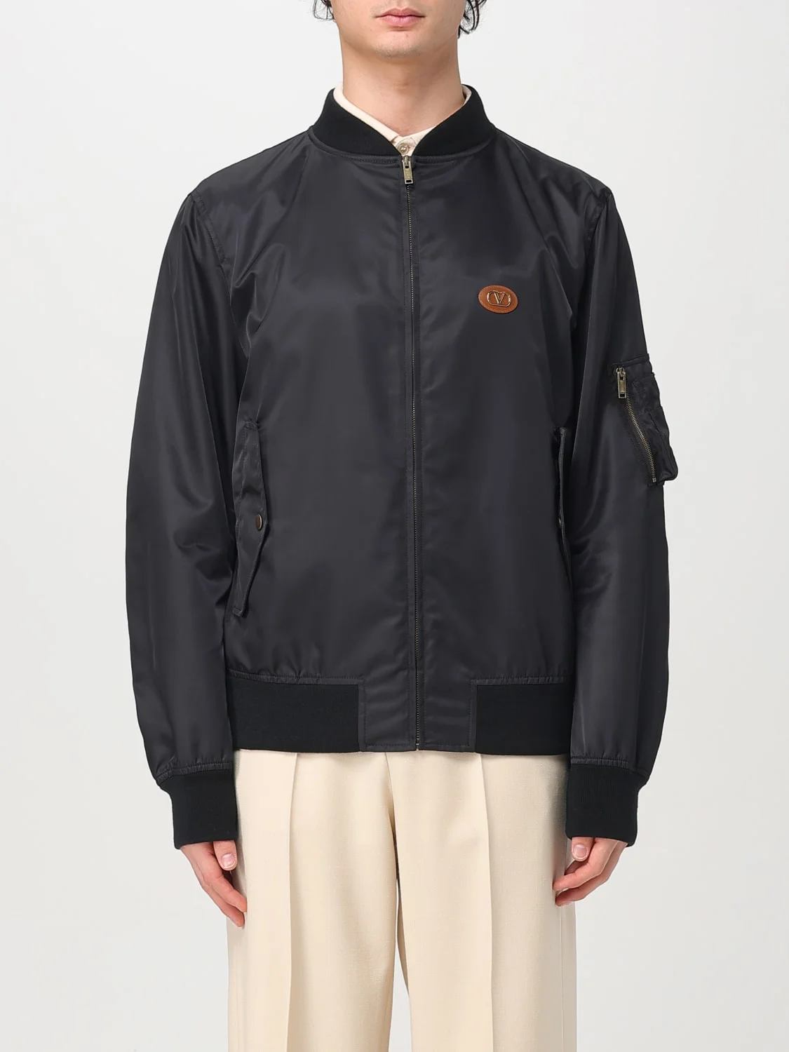 DESCRIPTION - Style: Sporty - Shoulders: Relaxed - Sleeves: Long - Closure: With zip - Pockets: America - Bottom: With straight hemline - Logo: With logo - Neck: Bomber - Length: Short jackets - Materials: Nylon - Pattern: Plain-colored DETAILS AND CARE Composition Chiusura con zip a scomparsa Tasche anteriori SIZE AND FIT Sizes not available Size and fit Relaxed fit Designer code: 6V3CI1725CM 0NO Giglio Code: G46809 Designer: Valentino Collection: Valentino Men Category: Clothing Valentino