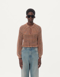 Valentino cotton and mouline linen sweater - Regular fit - 7-gauge knit - Composition: 66% Cotton, 34% Linen - Length: 75 cm / 29.5 in. from the back of the neck in a size M - The model is 187 cm / 6'1" tall and wears a size M - Made in Italy The look of the model is completed by a Valentino Garavani Nellcote Bag and Valentino Garavani Valet Du Roi Shoes. Product code: 6V0KC34AAUT_AH2