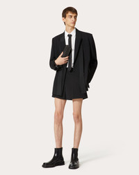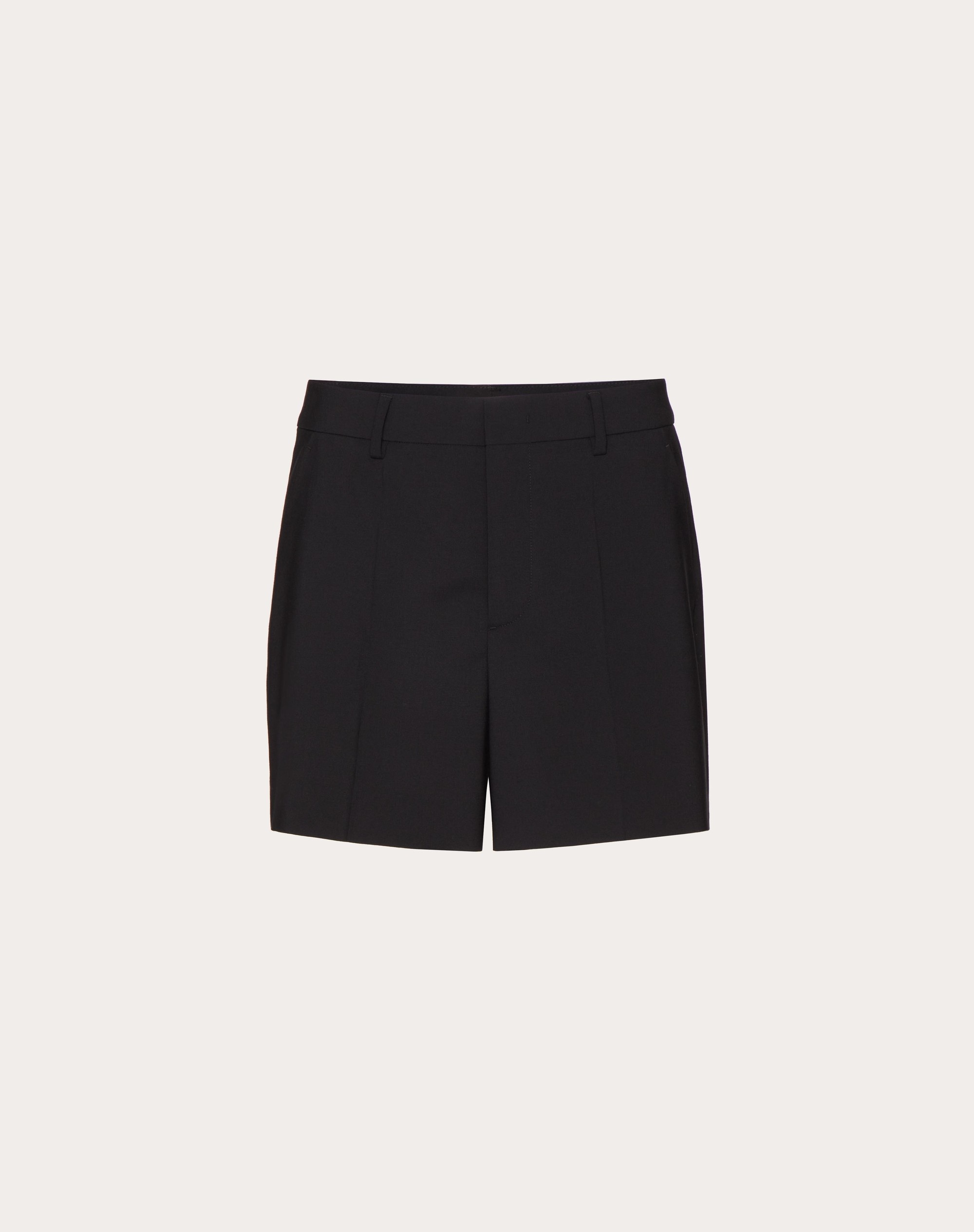 Valentino lana stretch wool bermuda shorts - Regular fit - Two side pockets - Two back pockets - Composition: 96% Virgin Wool, 4% Elastane - Length: 30 cm/ 11.8 in. for an Italian size 46 - Leg opening: 31.5 cm / 12.4 in. for an Italian size 46 - The model is 187 cm / 6'1" tall and wears an Italian size 46 - Made in Italy The look of the model is completed by Valentino Garavani Rockstud Shoes. Product code: 3V0RDD279RC_0NO