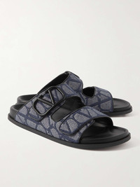 Valentino Garavani's denim slides are jacquard-woven with its recognisable 'Toile Iconograph' monogram. Trimmed with smooth, glossy leather, they're set on cushioned footbeds and have grippy, rubber soles. Wear them wherever the warm weather takes you. Size & Fit - Fits true to size. Take your normal size - Only available in full sizes, go up to the nearest whole size if you take a half size - European sizing Details & Care - Tonal-blue denim, black leather (Calf)