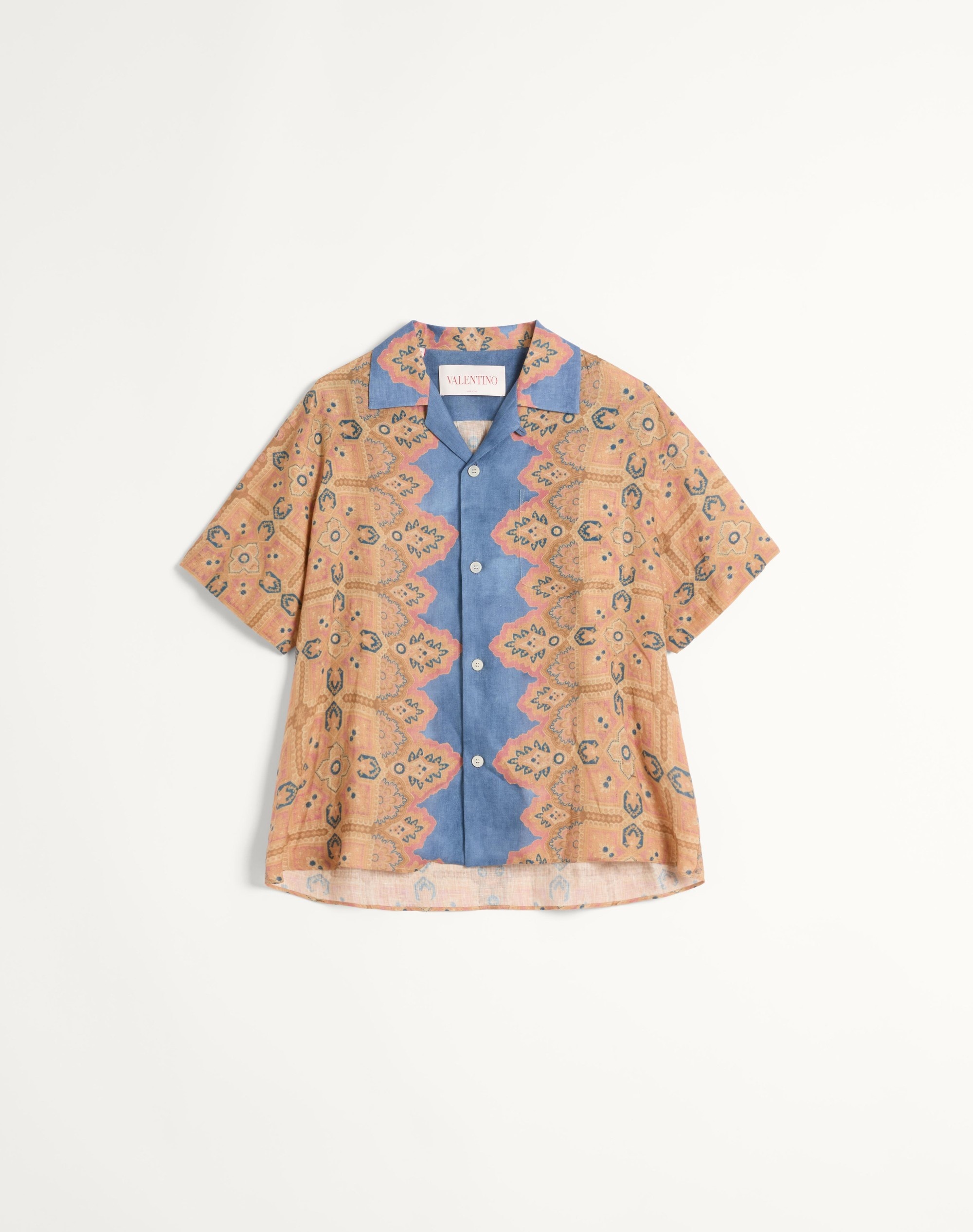 LINEN BOWLING SHIRT WITH VOYAGE IMAGINAIRE PRINT