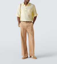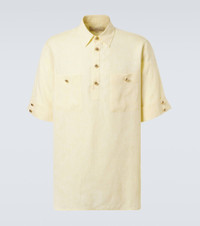 Stylish breezy escapes await with this shirt from Valentino. Crafted from breathable linen, this design features short sleeves and a classic buttoned front. Product Details - Material: 100% linen - Care instructions: machine wash at 30 degrees - Made in Italy - Designer color name: Lemon Cream - Item color: yellow - Closure: buttoned placket - Hardware color: gold - Sleeves: short-sleeved - Cuff: two buttons - Pockets: buttoned pockets - Hem: rounded - Collar: classic (Straight point) - Item number: P01043626 Size & Fit - True to size - Dropped shoulders - Designed for a loose fit - Non-stretchy fabric - Falls below the hip - Height of model is 189cm-74.5" and wears a size EU 41