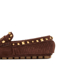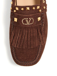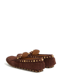 Fastaway driver loafers Highlights - Brown - Slip-on style - Rubber sole - Vlogo signature - Gold-tone rockstud embellishment Made in Italy Composition Sole: Rubber 100% Lining: Leather 100% Outer: Suede 100%, Leather 100%