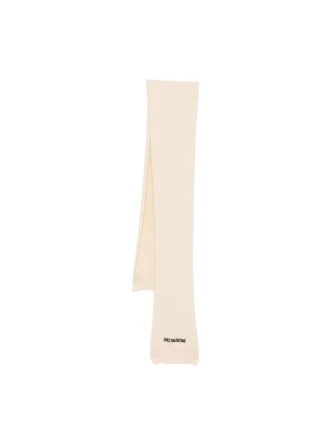 logo-embroidered ribbed scarf Highlights - Light beige - Ribbed texture - Side slits - Button fastening Made in Italy Composition Cotton 60%, Virgin Wool 40% SIZE & FIT Measurement LENGTH 70.86 in(180 cm) WIDTH 7.87 in(20 cm) Washing instructions Hand Wash