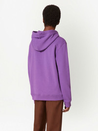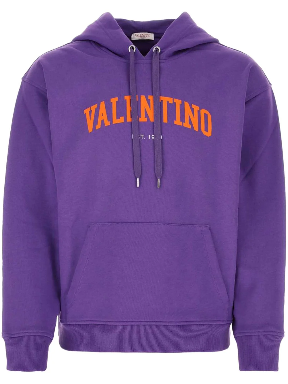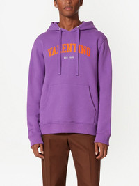 logo-print cotton hoodie Valentino Garavani's hoodie is decorated with a varsity-inspired logo at the chest. The vibrant orange letters pop against the purple background. Highlights - Valentino ready to wear - Purple - Cotton - Logo print at the chest - Drawstring hood - Front pouch pocket - The full look includes valentino garavani accessories. Made in Italy Composition Cotton 100% Washing instructions Read Manufacturer Guidelines