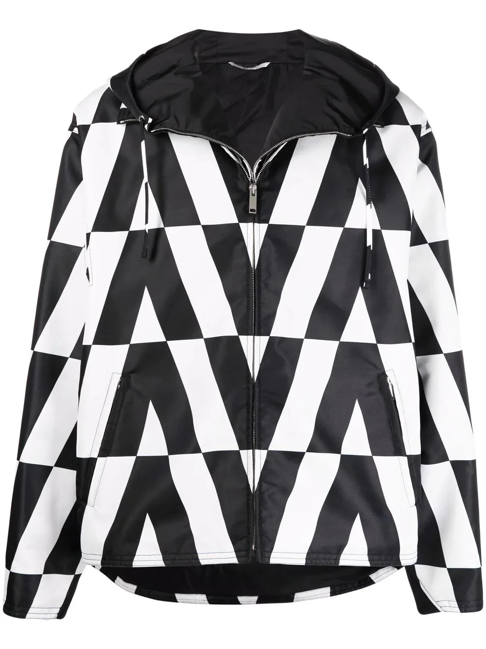 logo-print hooded jacket Highlights - Valentino ready to wear - Black/white - All-over logo print - Classic hood - Front zip fastening - Long sleeves - Two side zip-fastening pockets Made in Italy Composition Outer: Polyamide 100% Lining: Polyamide 100%, Polyester 100% SIZE & FIT Model measurements Height 6 ft 1 in(1.85 m) Bust/Chest 38.58 in(98 cm) Hips 37 in(94 cm) Waist 30.31 in(77 cm) Washing instructions Read Manufacturer Guidelines