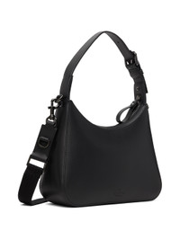 Buffed leather shoulder bag in black. · Adjustable carry handle · Detachable shoulder strap · Logo bonded at face · Logo embossed at back face · Zip closure · Patch pocket and logo patch at interior · Suede lining · H7.5 x W9.5 x D3 in Supplier color: Nero Leather.