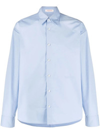 embroidered shirt Exhibiting Valentino Garavani's classic style, this blue shirt is crafted in a crisp cotton fabrication. Featuring a pointed flat collar, the long-sleeve design is complete with a front button fastening. Highlights - Valentino ready to wear - Blue - Cotton - Pointed flat collar - Long sleeves - Front button fastening - Rear curved hem Made in Italy Composition Cotton 100%, Polyester 100% SIZE & FIT Model measurements Height 6 ft 2 in(1.89 m) Bust/Chest 37 in(94 cm) Hips 37 in(94 cm) Waist 28.93 in(73.5 cm) FittingInformation This piece fits true to size. We recommend you get your regular size Cut for a loose fit Made with a mid-weight non-stretch fabric Washing instructions Read Manufacturer Guidelines