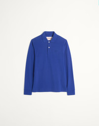 Valentino long-sleeved cotton pique polo shirt with VLogo embroidery - Regular fit - VLogo Signature embroidery on left breast as worn - Composition: 100% Cotton - Length: 69 cm / 27.1 in. from the back of the neck in a size M - The model is 187 cm / 6'1" tall and wears a size M - Made in Italy The look of the model is completed by a Valentino Garavani Antibes Bag and Valentino Garavani Bay By Bay Shoes. Product code: 6V3MH03XAQ7_B01