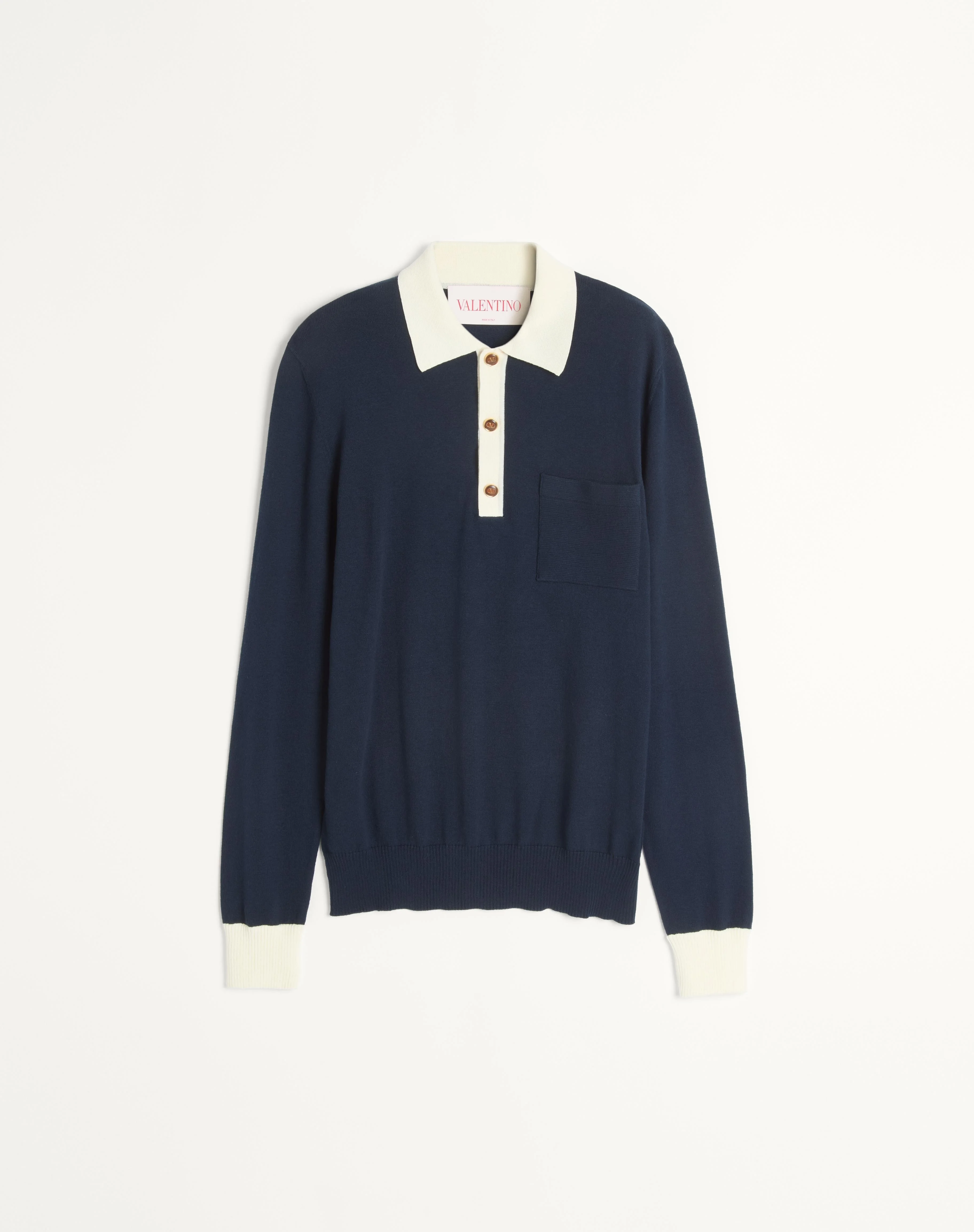 Cotton long-sleeved polo shirt - Regular fit - 14 Gauge - Composition: 100% Cotton - Length: 68 cm / 26.8 in. from the back of the neck in a size M - The model is 187 cm / 6'1" tall and wears a size M - Made in Italy The look of the model is completed by Valentino Garavani Bay By Bay Shoes. Product code: 6V3KP03QAPE_RGX