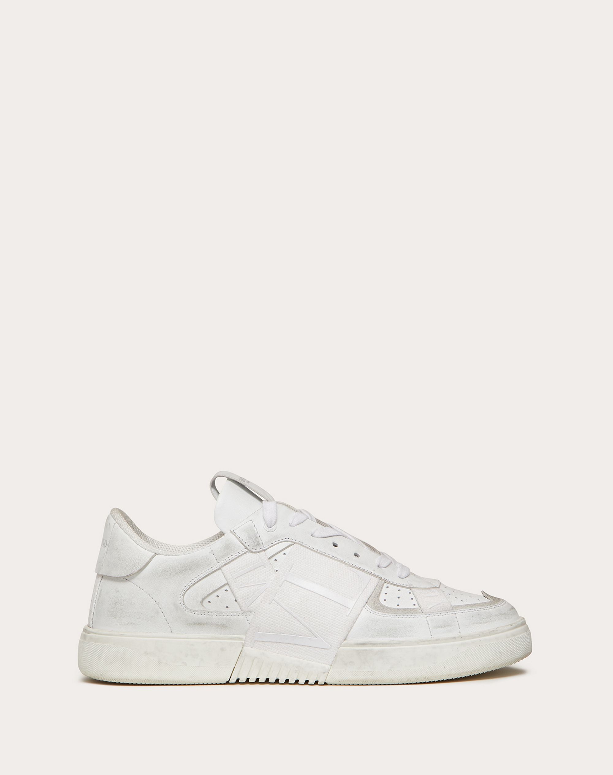 Valentino Garavani Low-top calfskin VL7N sneaker with bands. - Treated leather upper for a vintage “worn” effect - Seven cotton bands with rubber-effect VLTN logo - Valentino Garavani heat-engraved logo on the back and the tongue - Rubber sole - Made in Italy Product Code: VY0S0C58JTV10K