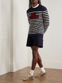 Logo-Intarsia Striped Virgin Wool Sweater Navy