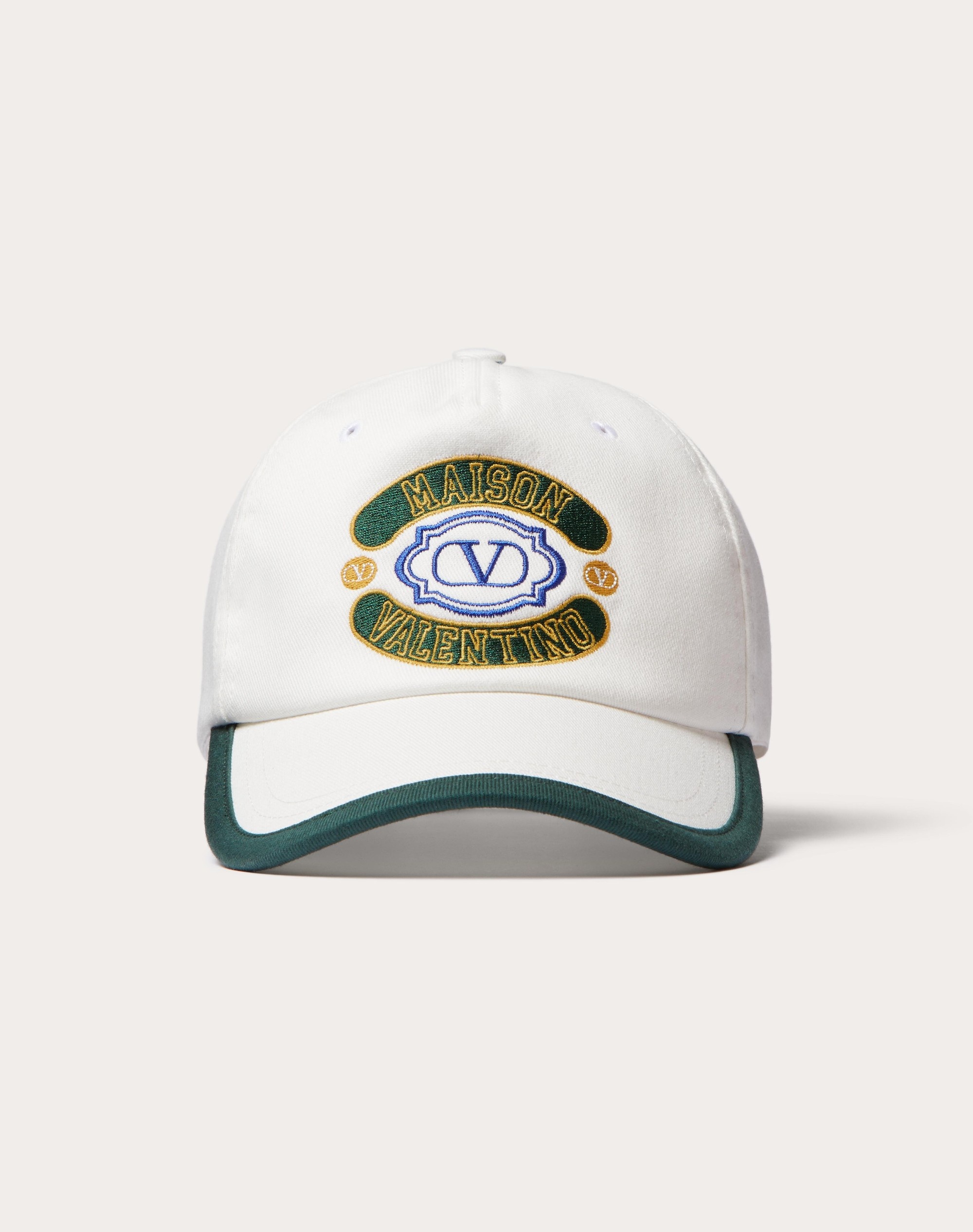 Maison Valentino baseball cap -Composition: Cotton - Maison Valentino embroidery logo -Available in sizes: 57 (S) –58 (M) –59 (L) –60 (XL) -Adjustable strap -Made in Italy Product code: YHDA10DFH_V1F