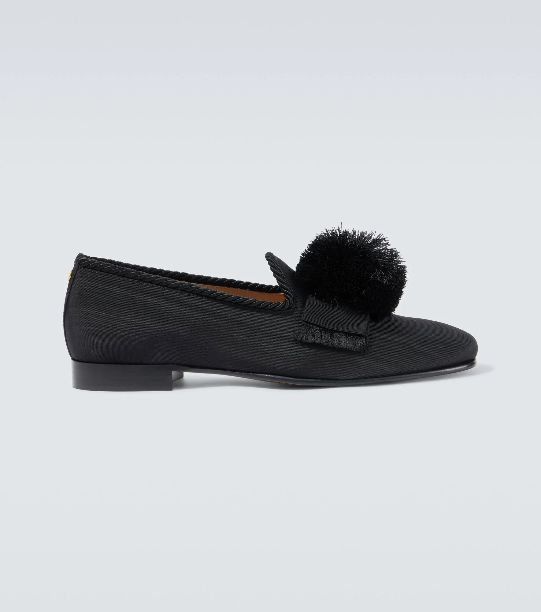 The Bowow grosgrain loafers feature striking pompom trims and gold-toned logo hardware at the heels. At once iconic and understated, Valentino Garavani's VLogo carries the Maison's legacy of elegance. Product Details - Upper: fabric - Lining: leather - Sole: leather insole and sole - Toe shape: almond toe - Made in Italy - Includes: shoe box, dust bags - Designer color name: Nero - Item color: black - Item number: P01041310 Size & Fit - Fits large to size - we recommend trying one size smaller - European sizes