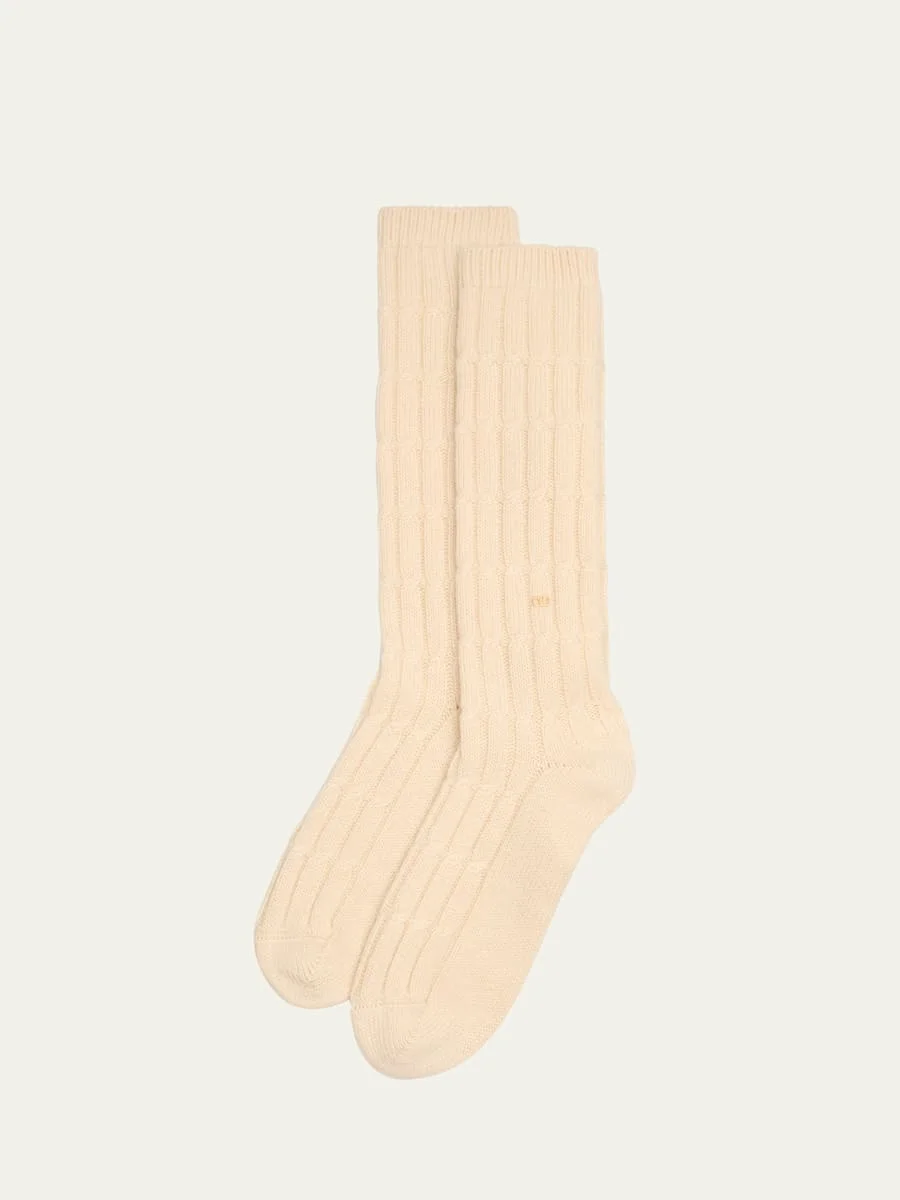 Valentino Garavani crew socks in a rib-knit cashmere blend Ribbed cuffs to prevent slipping Cashmere/nylon/polyurethane Made in Italy Online Inquiries: BGS21_NCHR6| Store Inquiries: #4886977