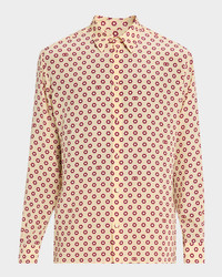 Men's Geometric VLogo Crepe De Chine Silk Dress Shirt