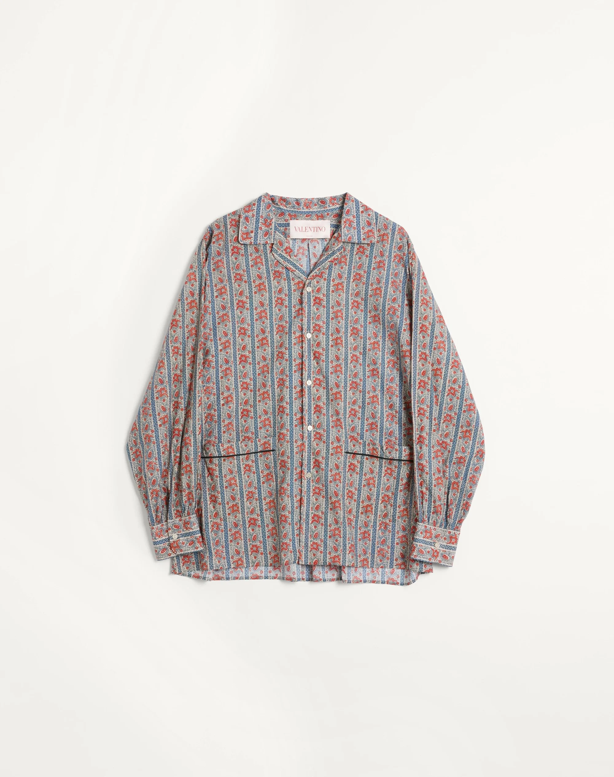 Valentino cotton muslin pajama shirt with all-over Voyage Imaginaire print - Regular fit - All-over Voyage Imaginaire print - Two front pockets - Composition: 100% cotton - Length: 80.2 cm / 31.5 in. from the back of the neck in a size M - The model is 187 cm / 6'1" tall and wears a size XL - Made in Italy The look of the model is completed by a Valentino Garavani Nellcote Bag and Valentino Garavani Viva Superstar Shoes. Product code: 6V3ABQ65AN2_QQX