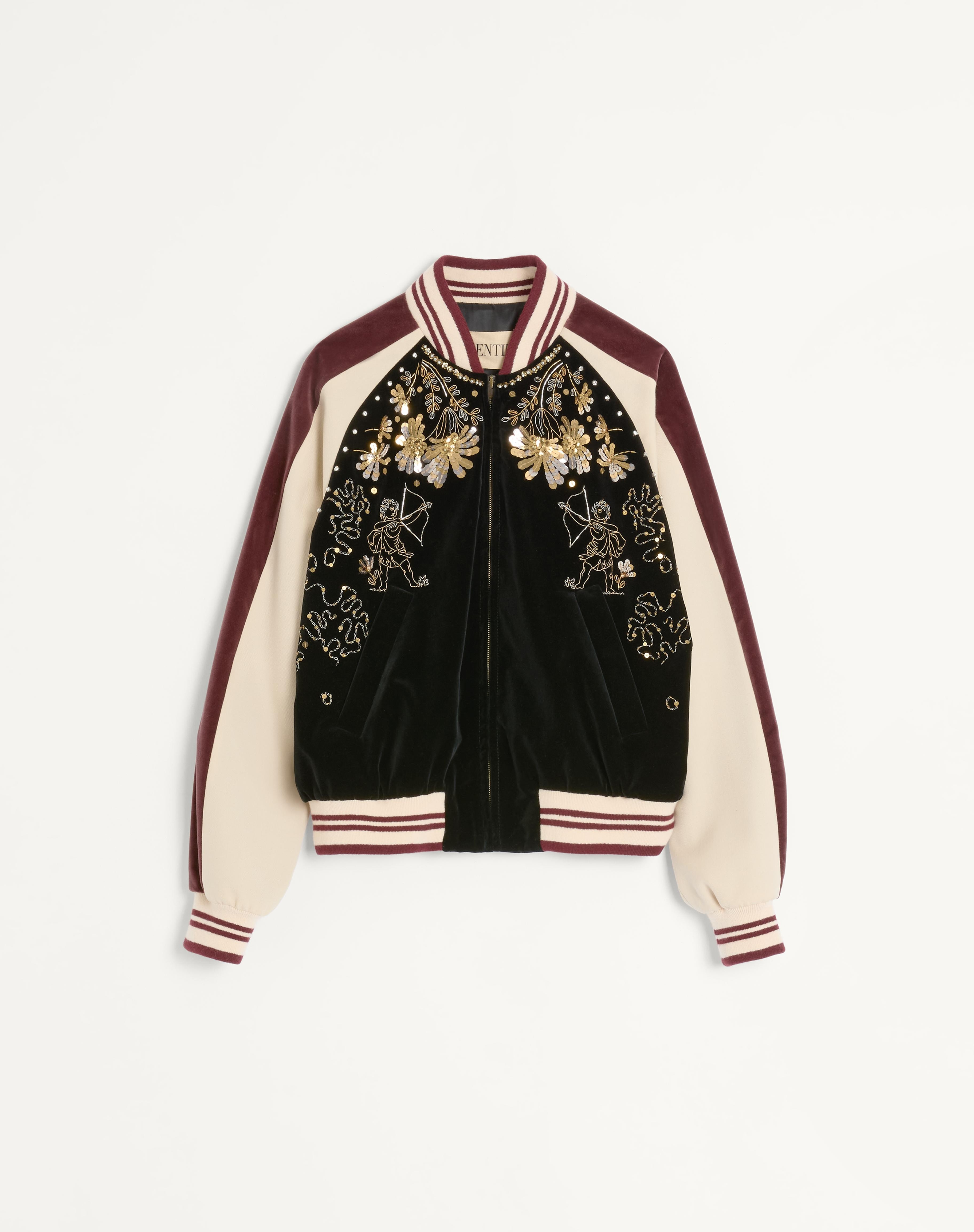 COTTON VELVET BOMBER WITH SEQUIN AND BEAD EMBROIDERY