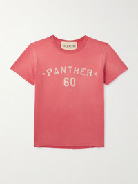 Chez Valentino Logo-Appliquéd Printed Cotton-Jersey T-Shirt Red