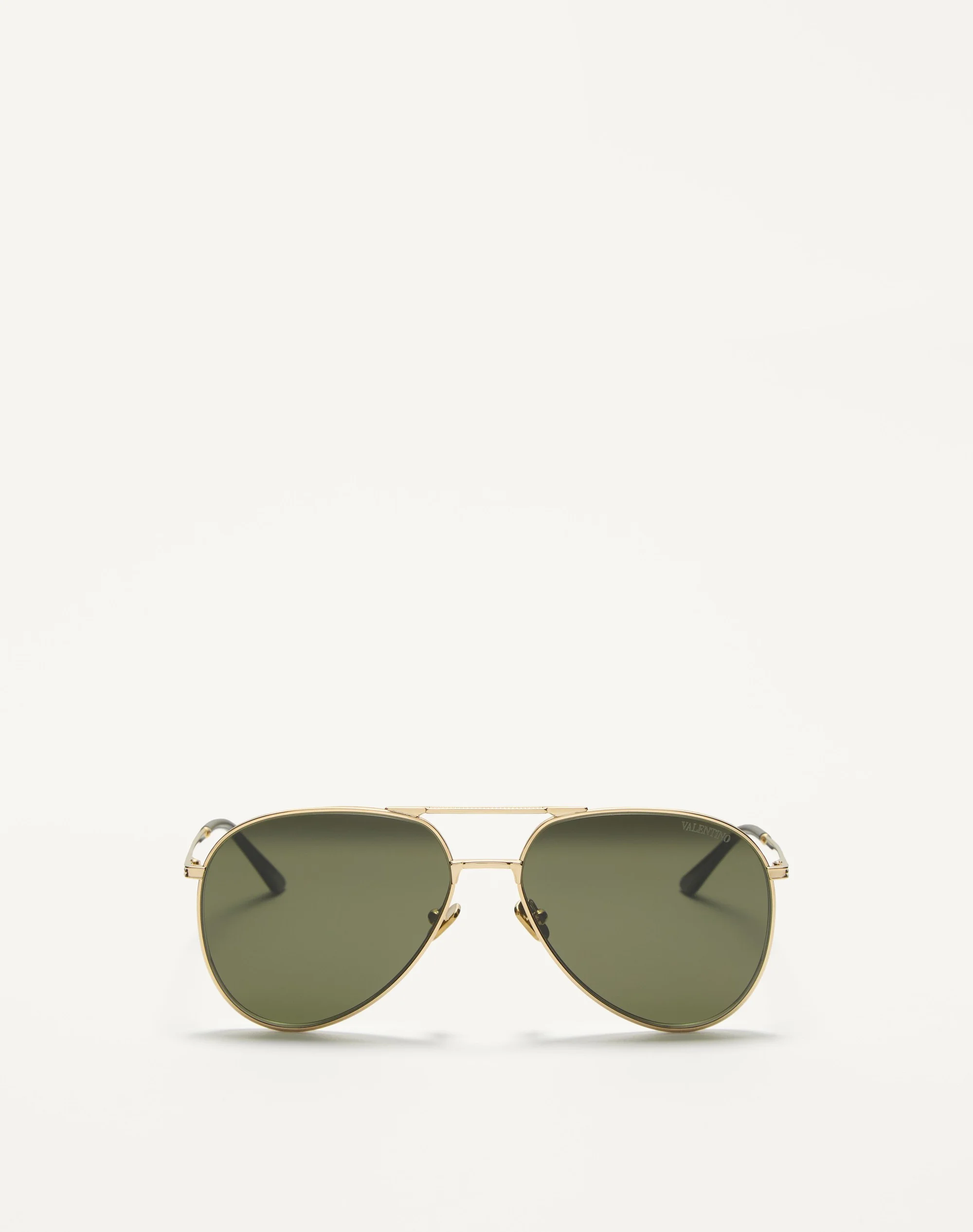 From the unforgettable golden age of 1970’s Valentino, Aviator is a classic, that’s forever stylish and always in fashion and that fits for him and for her. A familiar design thoughtfully reimagined with sophisticated technical refinements and elegant design flourishes that won’t go unnoticed, the aviator is crafted of lightweight metal and features retro-thick lenses set in a thin front rim for period accuracy and dramatic contrast. Additional appointments include an elegantly stippled double-bridge with VLogo ceramic nose pads and slimline temples bearing the iconic Valentino logotype. FEATURES - Lens Base: 2 Lens Category: 3 Lens Material: Nylon - UV Transmittance: 0% Visibility Transmittance: 11.23% - Prescription friendly - Paper box: black matte paper box in recycled / FSC paper with black paper envelope inserts to include product accessories, recycled microfibre lens cloth and pouch. - Leather case: black case and strap in shiny recycled leather with black metal VLogo - Unisex Sunglass - Handcrafted in Italy MEASUREMENTS - Temples lenght: 14.5 cm / 5.7 in - Frame total width: 14 cm / 5.5 in - Lens Width: 6 cm / 2.6 in - Lens Height: 5.2 cm / 2.0 in - Bridge: 1.5 cm / 0.5 in Product code: Z530VLS172A_7FW