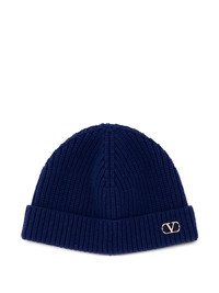 VLogo Signature beanie Highlights - Navy blue - Round crown - Turn-up hem Made in Italy Composition Cashmere 100%