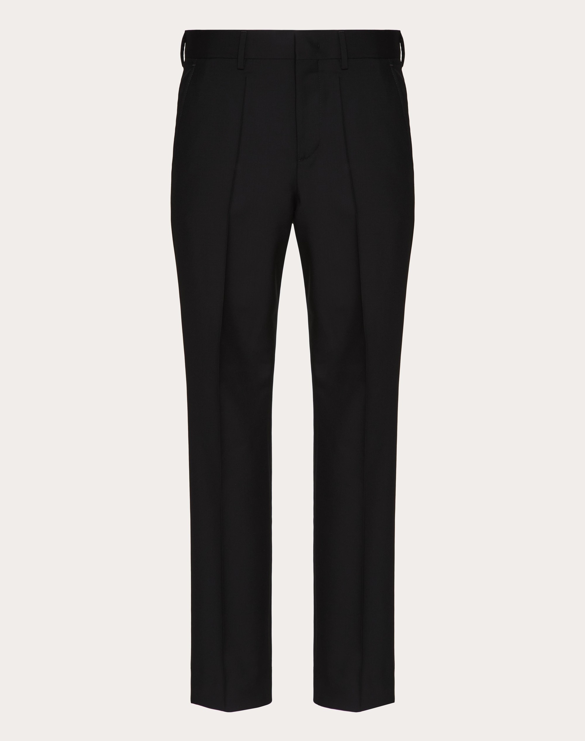 Valentino pants in mohair wool - Slim fit - Two side pockets - Two rear pockets - Composition: 84% Wool, 16% Mohair - Length: 106 cm / 41.7 in. in an Italian size 46 - Leg opening: 19 cm / 7.4 in. in an Italian size 46 - The model is 187 cm / 6'1" tall and wears an Italian size 46 - Made in Italy The look of the model is completed by a Valentino Garavani Alltime Bag and Valentino Garavani One Stud Shoes. Product code: 5V3RBK7525S_0NO