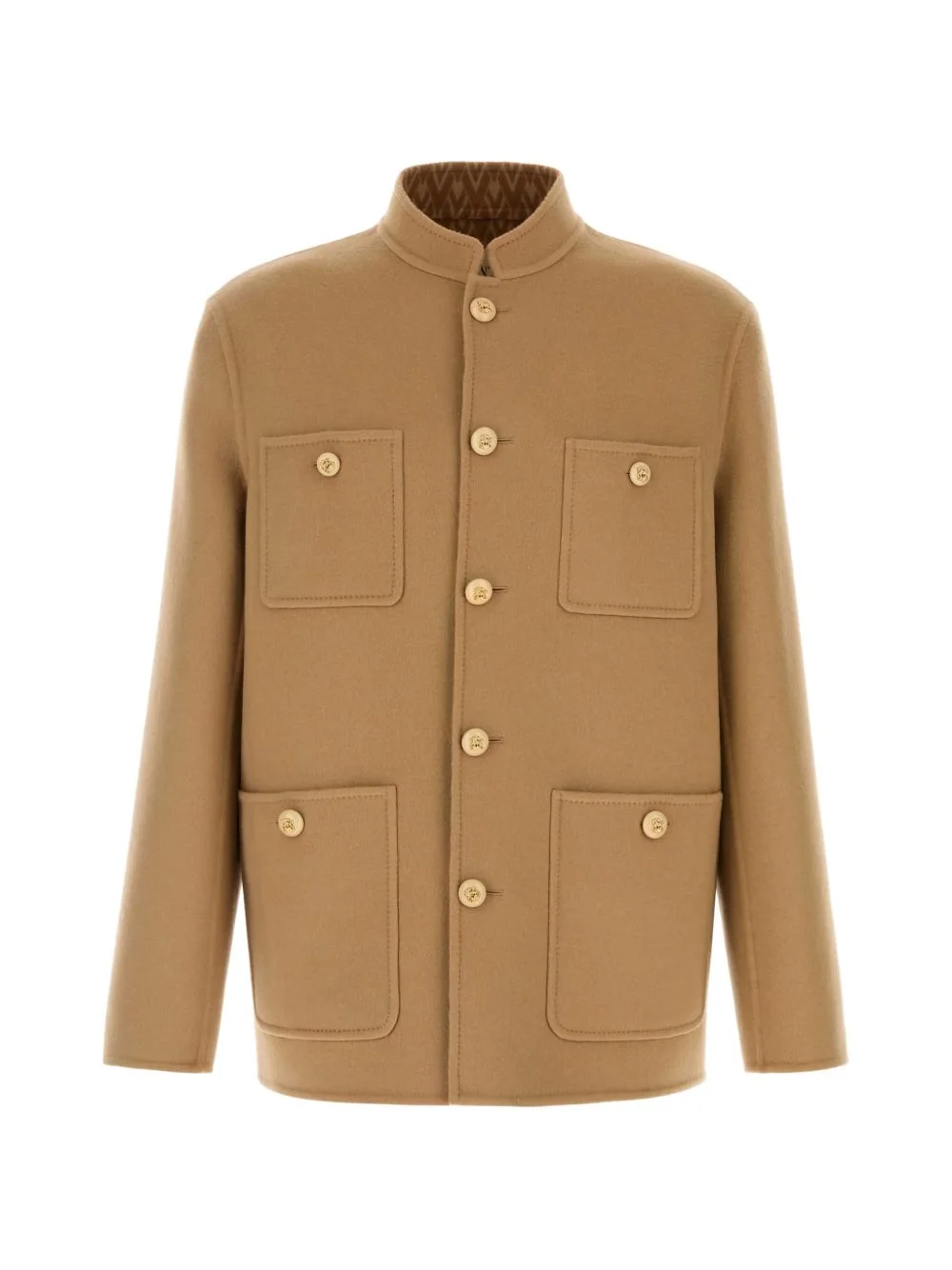 multi-pocket jacket Highlights - Camel - High neck - Front button fastening - Front patch pockets - Long sleeves Made in Italy Composition Virgin Wool 99%, Silk 1% Washing instructions Read Manufacturer Guidelines
