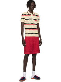 Padded velvet slippers. · Graphic pattern embroidered throughout · Logo embroidered at vamp · Logo patch at padded footbed · Logo-treaded rubber sole Supplier color: Indigo/Red/Green Upper: textile. Sole: rubber. Made in Italy 252807M231007
