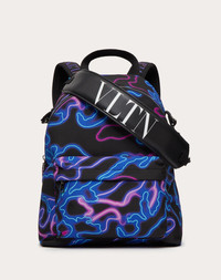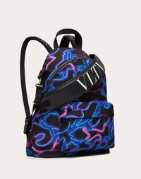 Valentino Garavani Neon Camou Backpack in Nylon. - Removable Nappa Calfskin strap with VLTN print - Black Ruthenium-finish hardware - Zipper fastening - Front zipper pocket - Open internal compartment - Adjustable VLTN Neon jacquard straps - Valentino Garavani logo - Dimensions: W32 x H45 x D17 cm / W12.6 x H17.7 x D6.7 in. - Made in Italy Product Code YB0A98ZFH_KQ0