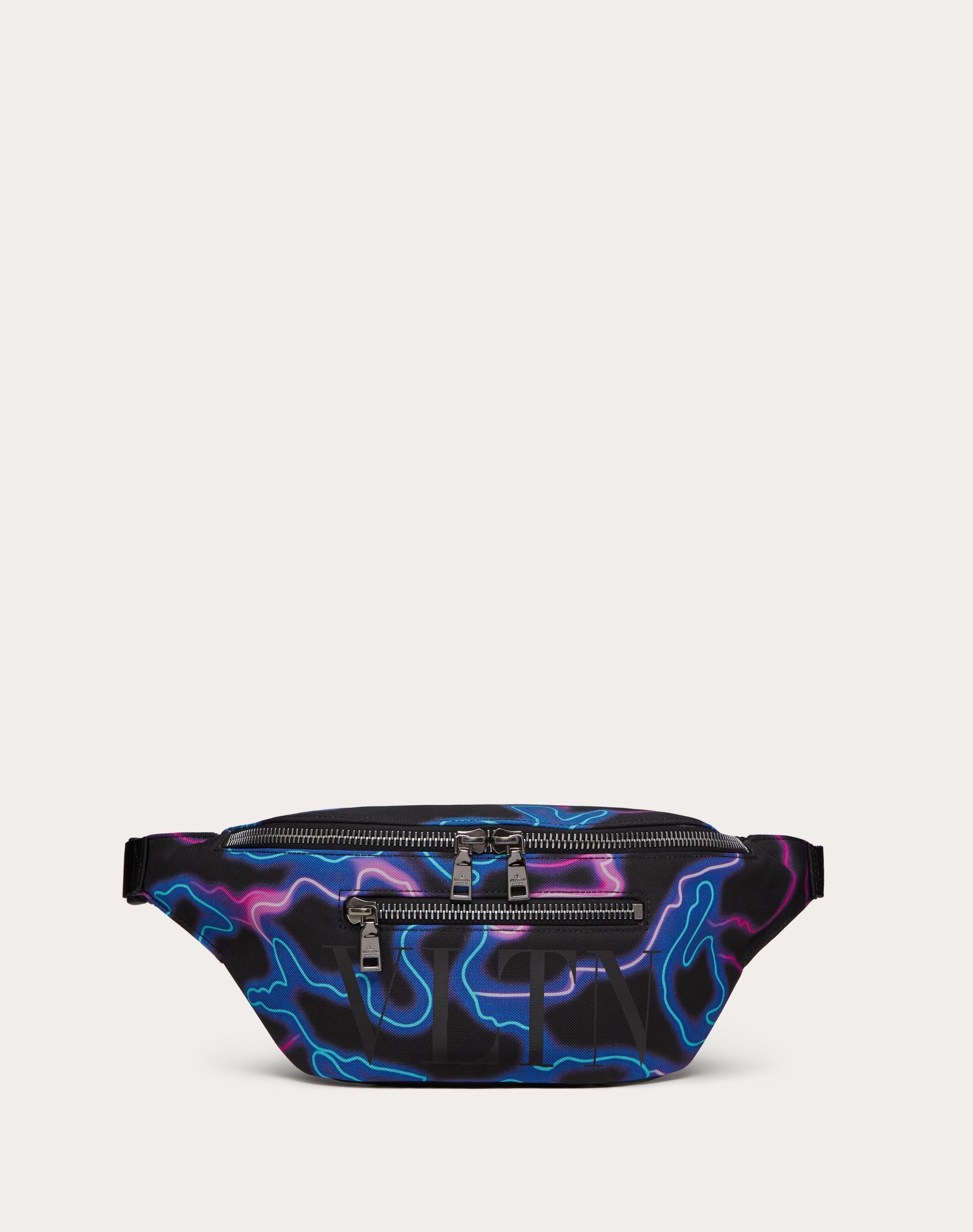 Valentino Garavani Neon Camou Belt Bag in Nylon. - Glossy black VLTN print - Black Ruthenium-finish hardware - Zipper fastening - Front zipper pocket - Open internal pocket - Adjustable belt: maximum length 140 cm/55.1 in. (including the bag’s body) - Valentino Garavani logo - Dimensions: W32 x H18 x D9 cm / W12.6 x H7.1 x D3.5 in. - Made in Italy Product Code YB0982LTG_KQ0