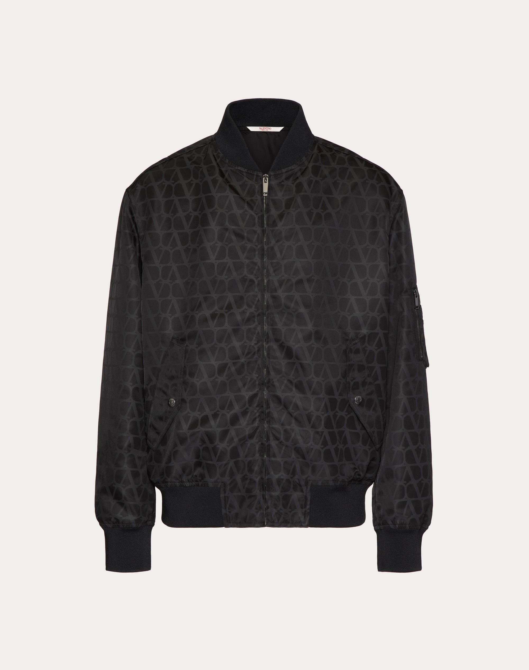 Valentino Nylon bomber jacket with all-over Toile Iconographe print - Slim fit - Lined - All-over Toile Iconographe print - Zipper closure - Two side pockets with flaps - One zipper pocket on the left sleeve as worn - Elasticated ribbed trim - Composition: 100% Polyamide - Lining: 100% Polyester - Length: 68 cm / 26.7 in. from the back of the neck in an Italian size 46 - The model is 187 cm / 6'1" tall and wears an Italian size 50 - Made in Italy The look of the model is completed by a Valentino Garavani Toile Iconographe Bag and Valentino Garavani Rockstud Shoes. Product code: 3V3CIF159HM_MXM Valentino Nylon bomber jacket with all-over Toile Iconographe print - Slim fit - Lined - All-over Toile Iconographe print - Zipper closure - Two side pockets with flaps - One zipper pocket on the left sleeve as worn - Elasticated ribbed trim - Composition: 100% Polyamide - Lining: 100% Polyester - Length: 68 cm / 26.7 in. from the back of the neck in an Italian size 46 - The model is 187 cm / 6'1" tall and wears an Italian size 50 - Made in Italy The look of the model is completed by a Valentino Garavani Toile Iconographe Bag and Valentino Garavani Rockstud Shoes. Product code: 3V3CIF159HM_MXM