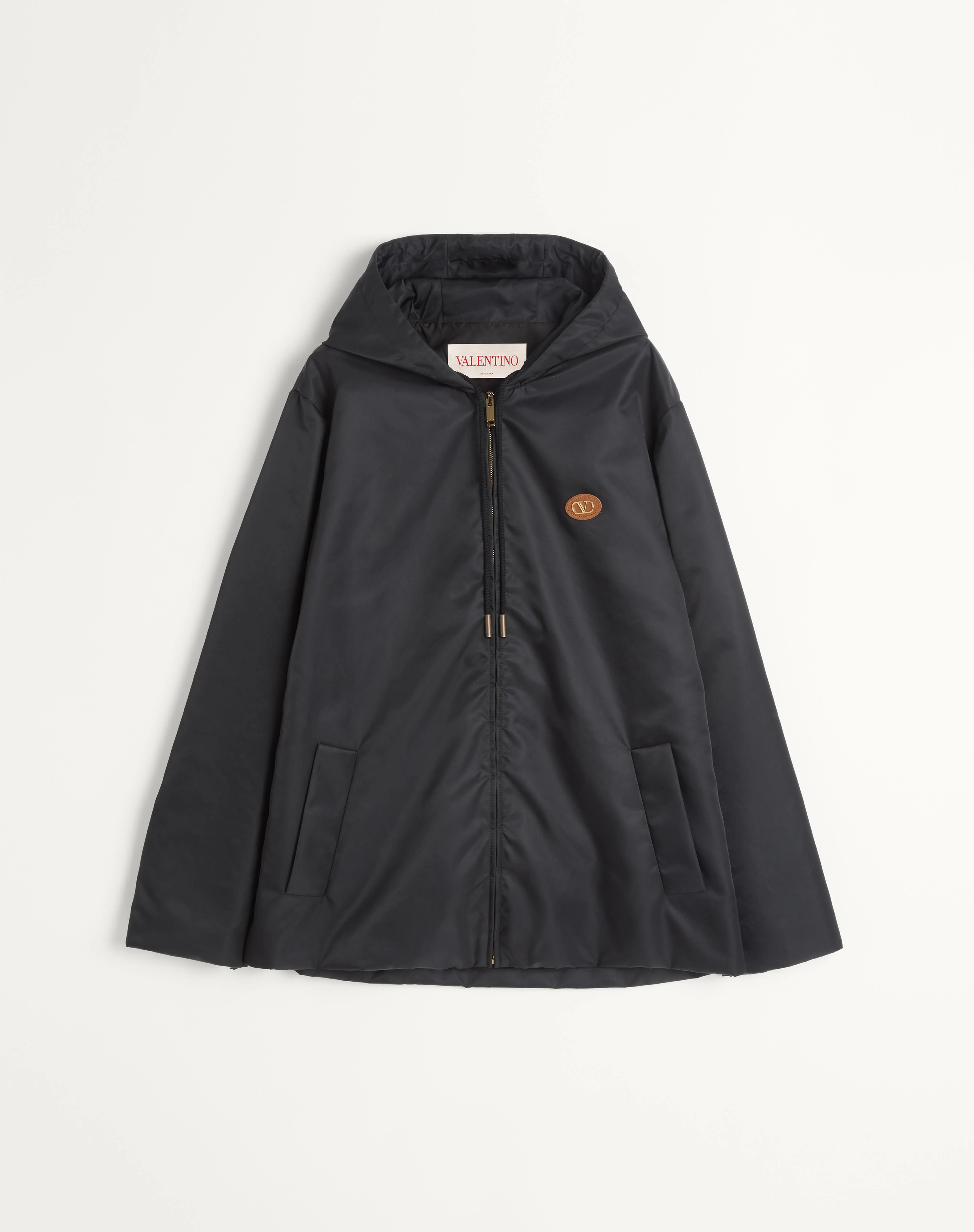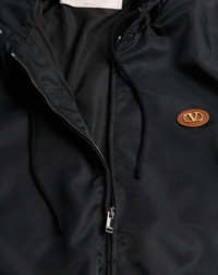 Valentino hooded nylon windbreaker with VLogo patch - Regular fit - Lined - Lightly padded - VLogo patch applied on the left breast as worn - Two side pockets - Composition: 100% Polyamide - Padding: 100% Polyester - Length: 76.4 cm / 30.1 in. from the back of the neck in an Italian size 46 - The model is 187 cm / 6'1" tall and wears an Italian size 48 - Made in Italy The look of the model is completed by Valentino Garavani VLogo Signature Shoes. Product code: 6V3CJL155CM_0NO