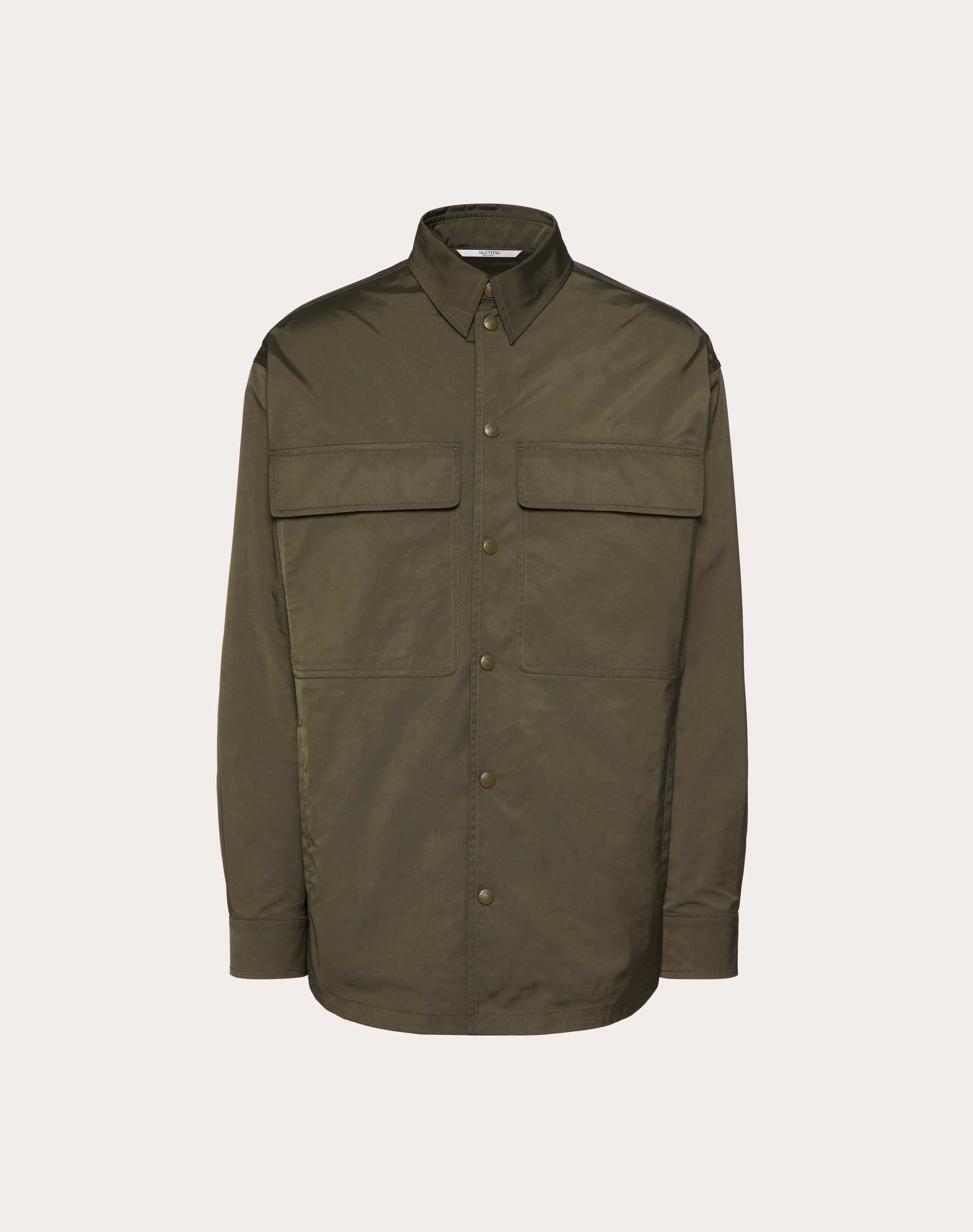 Shirt jacket in Nylon with VLTN TAG. - Regular fit - VLTN TAG at bottom back - Button closure - 2 side pockets and 2 back pockets - Composition: 100% Polyester - Length: 77.5 cm / 30.5 in. from the back of the neckline in Italian size 46 - The model is 187 cm / 6’2” tall and is wearing an Italian size 46 - Made in Italy Product Code VCJE287VL_L90