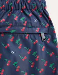 Valentino nylon swimsuit with Cherryfic print - Regular fit - Cherryfic all-over print - Elasticated waist - Two side pockets - One rear pocket - Composition: 100% Polyamide - Length: 36 cm / 14.2 in. in an Italian size 46 - The model is 187 cm / 6'1" tall and wears an Italian size 46 - Made in Italy The look of the model is completed by Valentino Garavani Viva Superstar Shoes. Product code: 7V3UH028AWN_CZQ