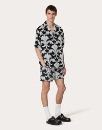 Valentino nylon swimsuit with all-over Metamorphos Wall print - Regular fit - Elasticated waistband - Two side pockets - One pocket on the back - Composition: 100% Polyamide - Length: 38.2 cm / 15 in. in an Italian size 46 - The model is 187 cm / 6'1" tall and wears an Italian size 46 - Made in Italy The look of the model is completed by Valentino Garavani Fussfriend Shoes. Product code: 5V3UH028ADL_ZBC