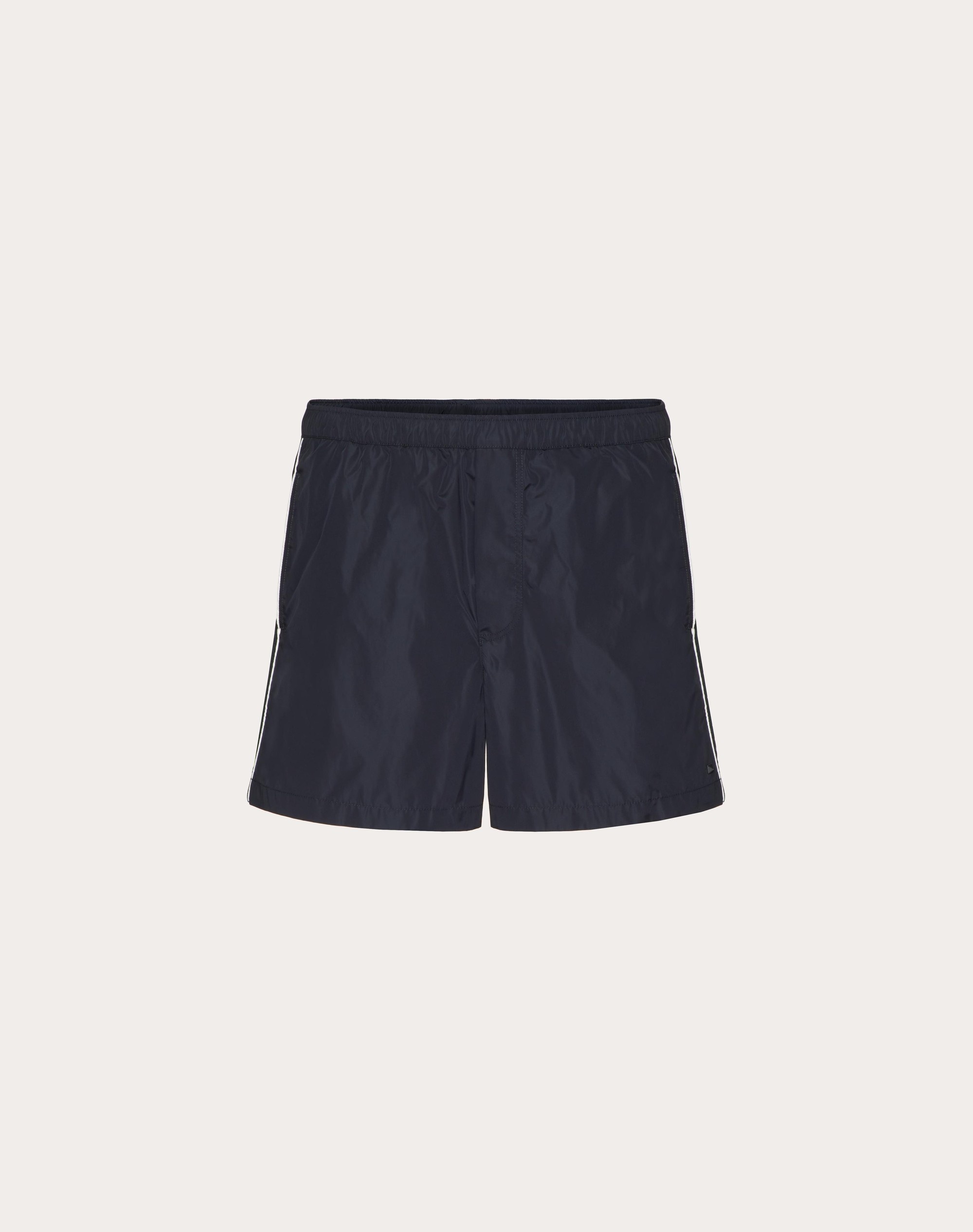Valentino nylon swimsuit with stud - Regular fit - Elasticated waistband - Two side pockets - One back pocket - Composition: 100% Polyamide - Length: 36 cm / 14.1 in. in an Italian size 46 - The model is 187 cm / 6'1" tall and wears an Italian size 46 - Made in Italy The look of the model is completed by Valentino Garavani Freedots Shoes. Product code: 4V3UH038713_598