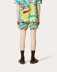 Valentino Nylon swimsuit with all-over Surf Rider print - Regular fit - Surf Rider print created in collaboration with SUN SURF - Elasticated waist - Two side pockets - - One back pocket - Composition: 100% Polyamide - Length: 36 cm / 14.2 in. The model is 187 cm / 6'1" tall and wears an Italian size 46 - Made in Italy The look of the model is completed by Valentino Garavani Roman Stud Shoes. Product code: 3V3UH0289KR_MLZ