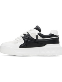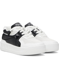 Low-top quilted nappa leather sneakers. · Perforations at toe and sides · Lace-up closure · Logo printed at padded tongue · Concealed elasticized gusset at tongue · Padded collar · Logo printed at outer side · Signature pyramid stud at outer side · Buffed leather and mesh lining · Logo embossed at platform rubber midsole · Treaded rubber sole · Platform: H2" Supplier color: White/Black Upper: leather. Sole: rubber. Made in Italy 252807M237005