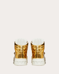 Valentino Garavani ONE STUD Mid-Top mirror-effect synthetic fabric sneaker. - Antique brass-finish Maxi Stud detail - Valentino Garavani logo printed on the tongue and heel - Rubber sole with low-relief Maxi stud detail - Rubber tread with Maxi stud detail - Made in Italy Product Code YS0E63FAR_KM5