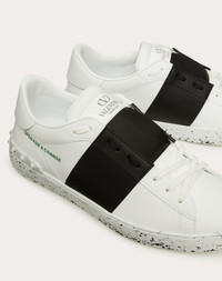 Valentino Garavani Open for a Change Sneaker in part bio-based and recycled materials - Vegan, cruelty-free footwear with no elements of animal origin - Bio-based material band - OPEN FOR A CHANGE print on side - Partially recycled rubber sole with stud detail on back - Recycled polyester laces - Recycled cotton shoe bag - Recycled paper box - Made in Italy Product Code YS0830PUD_A01