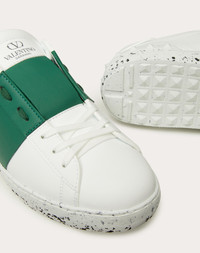 Valentino Garavani Open for a Change Sneaker in part bio-based and recycled materials - Vegan, cruelty-free footwear with no elements of animal origin - Bio-based material band - OPEN FOR A CHANGE print on side - Partially recycled rubber sole with stud detail on back - Recycled polyester laces - Recycled cotton shoe bag - Recycled paper box - Made in Italy Product Code YS0830PUD_M06